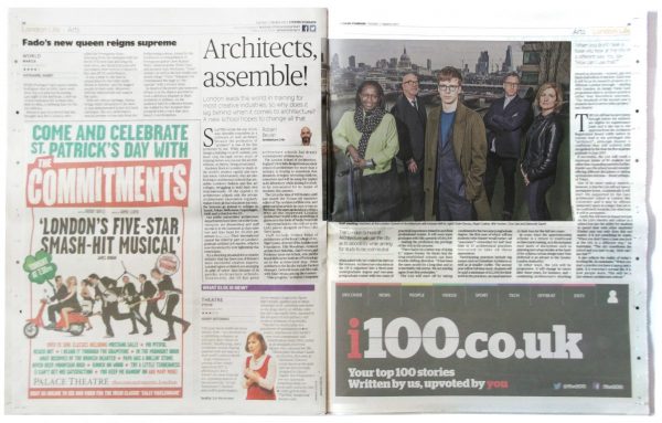 In March 2015, the Evening Standard launched the London School of Architecture as we opened for applications. Pictured are some of the LSA team: Elsie Owusu, Nigel Coates, Will Hunter, Clive Sall and Deborah Saunt